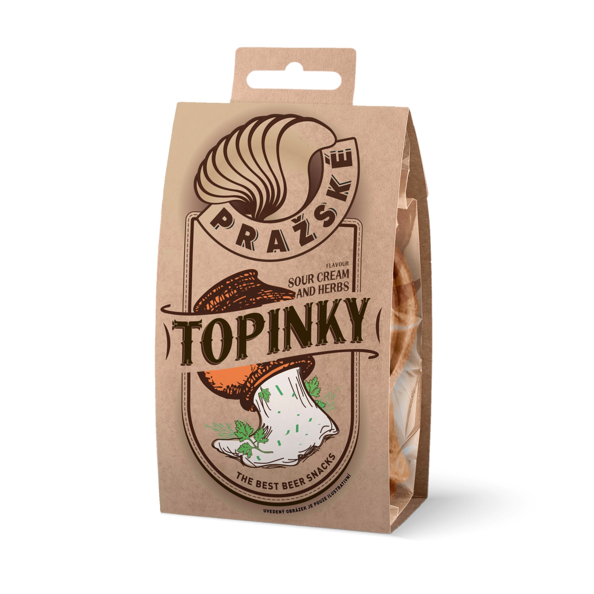 Smooth, fresh and perfectly balanced — Pražské Topinky — Sour Cream & Herbs combines creamy sour cream notes with a delicate blend of aromatic herbs, all wrapped in a satisfying crunch.